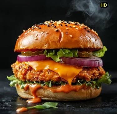 We serve handcrafted pizzas and gourmet burgers made from the freshest ingredients.